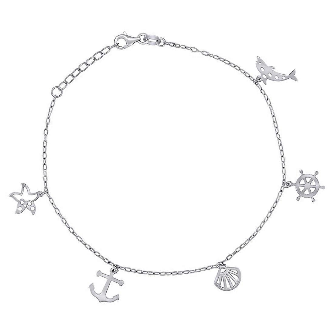 925 Sterling Silver Womens Ocean Life Charms Anklet 10 Inch 14.7mm Long Anklet for Women - 2.5 Grams