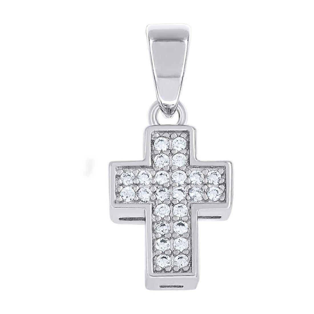925 Sterling Silver Unisex Cubic Zirconia Cross Religious Charm Pendant Necklace 18x8.2mm Wide Pendant for Women