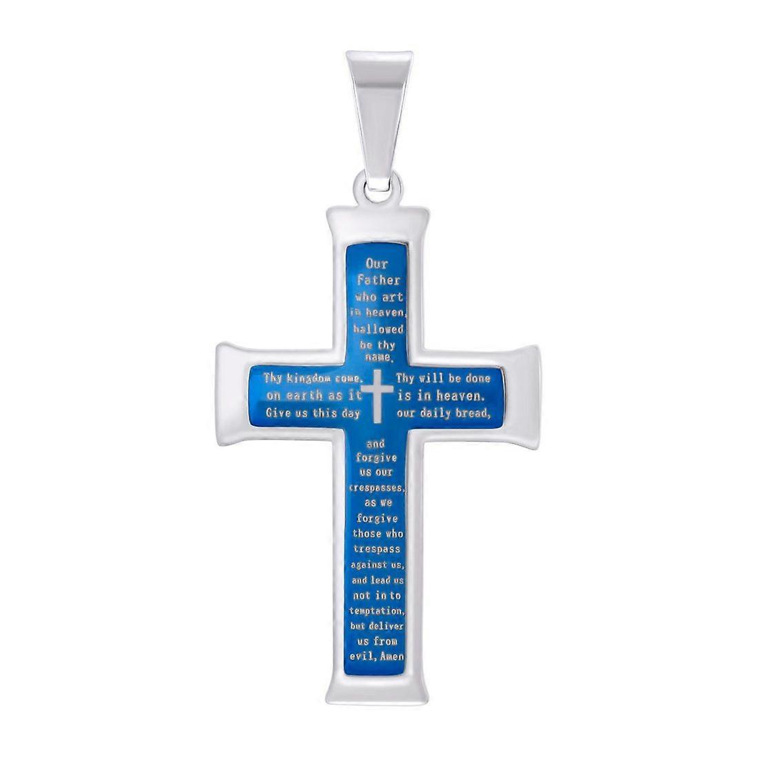 Stainless Steel Blue-tone Mens Lord's Prayer Cross Religious Charm Pendant Necklace for Men