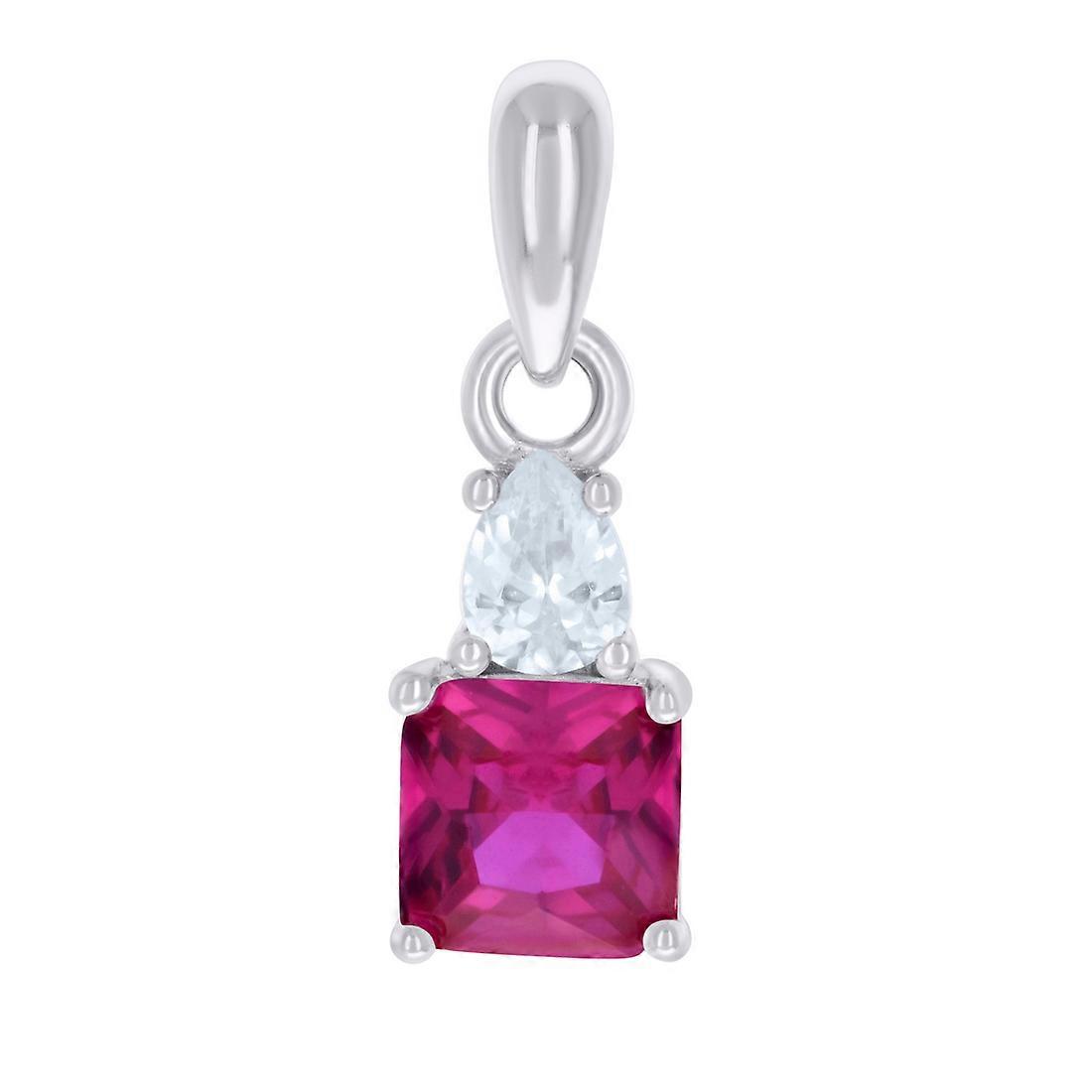 925 Sterling Silver Womens Red White Pear Princess-cut Cubic Zirconia Fashion Charm Pendant Necklace 14.5x4.9mm Wide Pen