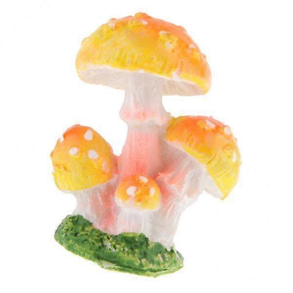 3X Miniature Mushroom Figurine Micro Landscape Garden Art Decor Yellow 4 Head