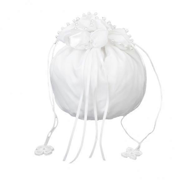 20x Wedding Bride Bridesmaid Flower Girl Drawstring Bag Beaded White Satin