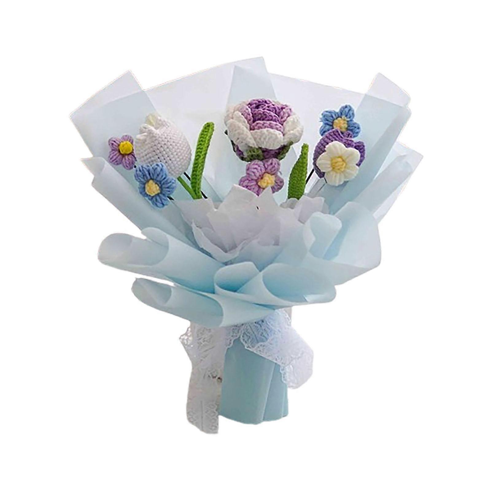 Knitted Rose Tulip Daisy Crochet Bouquet Valentines Gift for Birthday Gift
