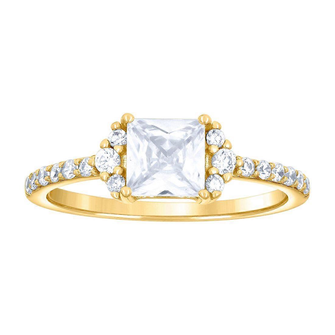 925 Sterling Silver Yellow-tone Womens Princess-cut Round Cubic Zirconia Engagement Ring - Measures 6.7mm Wide - In Sterling Silver in Plated Metal - - Ring Size Options: 5 6 7 8 9 - [ Potential Enhancement Methods: cubic zirconia ] - Synthetic. Some are covered with a product that makes the stone more durable. - [ Care and Handling: cubic zirconia ] - Clean with warm soapy water and a soft cloth. -