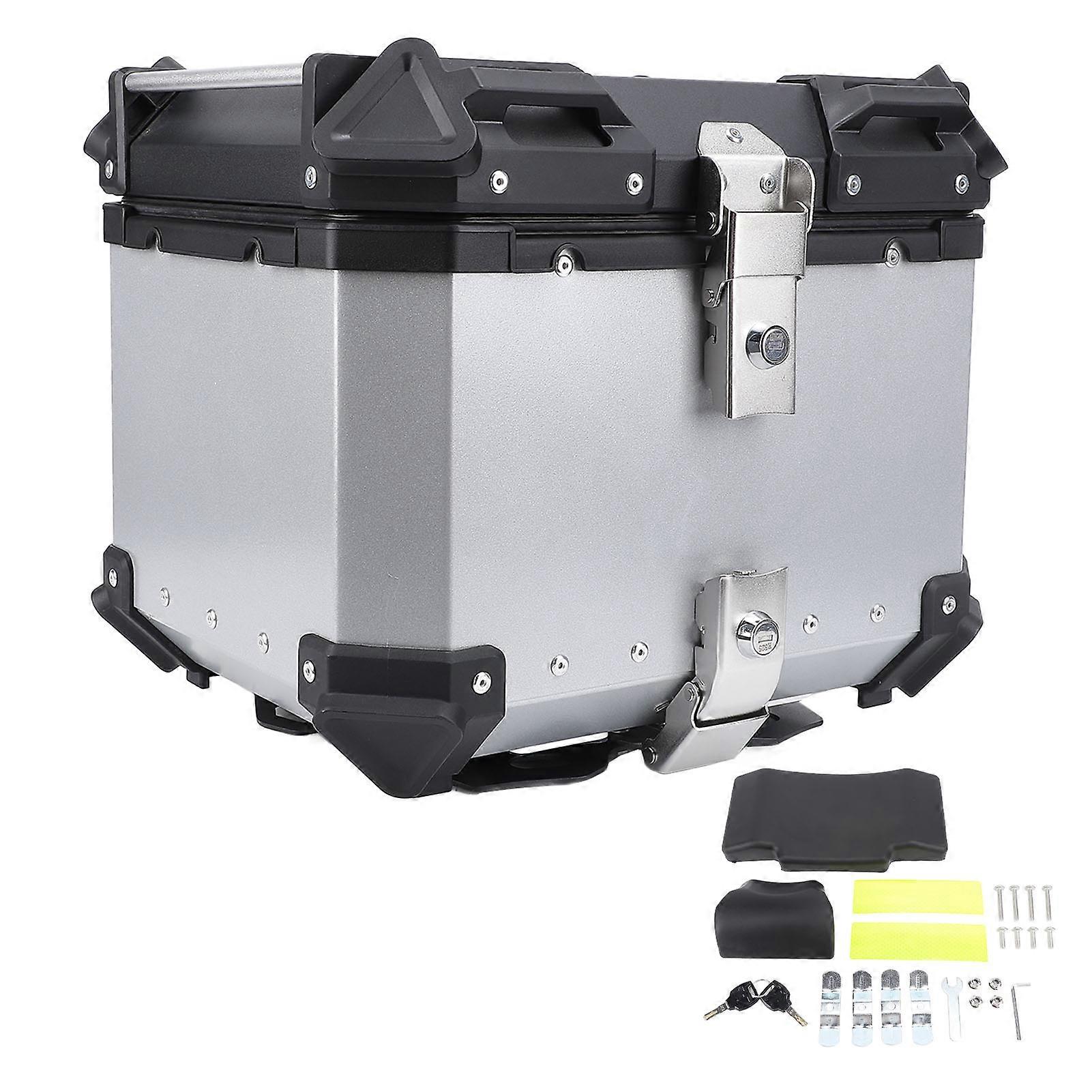 36L Motorcycle Top Case Aluminium Storage Box Waterproof Motorbike Tail Box with Safety Lock Helmet Luggage Holder Universal Fit Oversized Silve