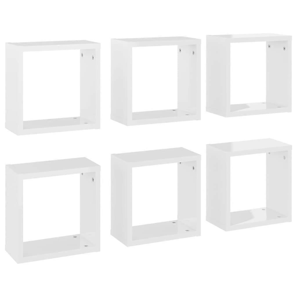 Wall Cube Shelves 6 Pcs High Gloss White 30X15x30 Cm Wall Shelves