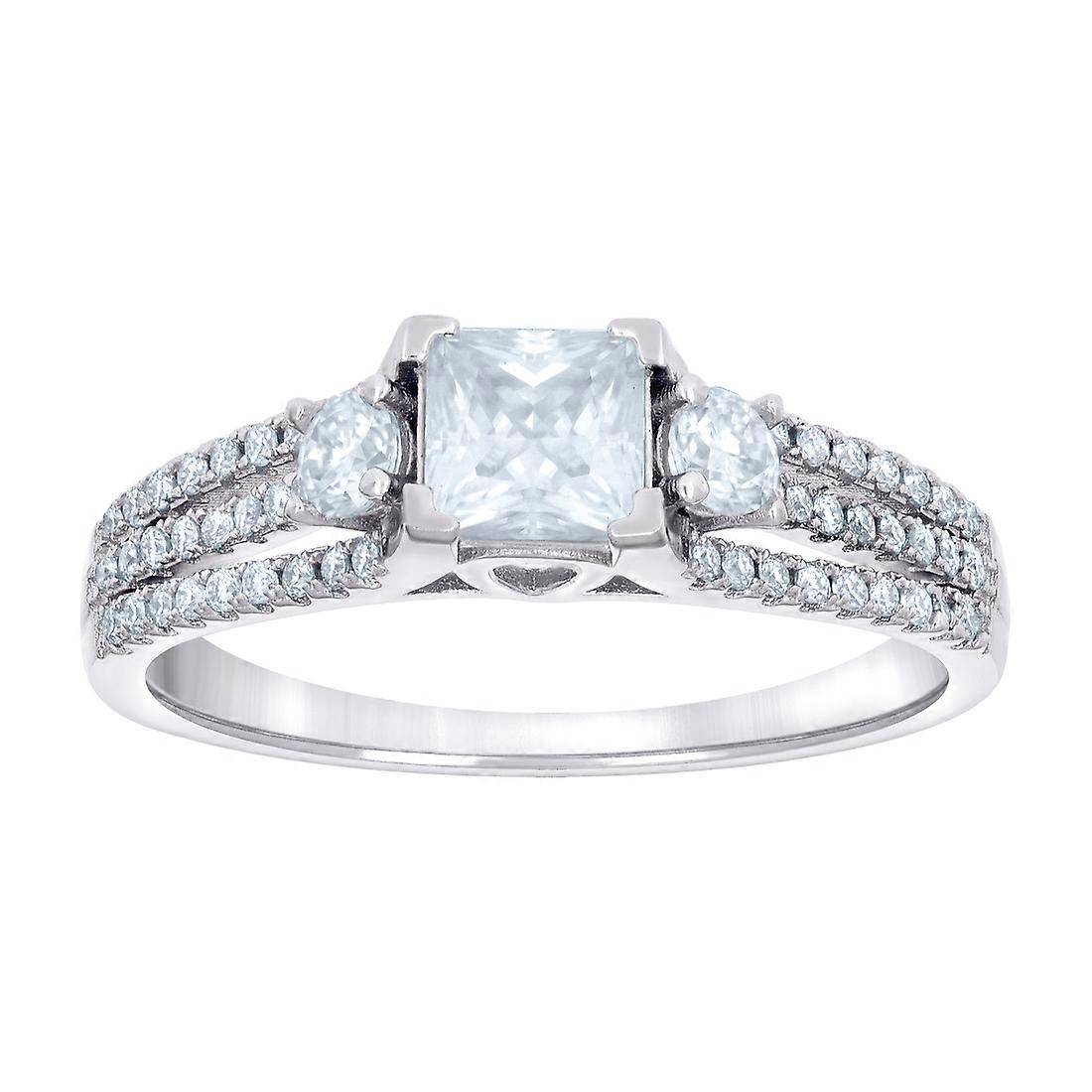 925 Sterling Silver Womens Princess cut Round Cubic Zirconia Fashion Engagement Ring 5.9x3.7mm Wide Engagement Ring for