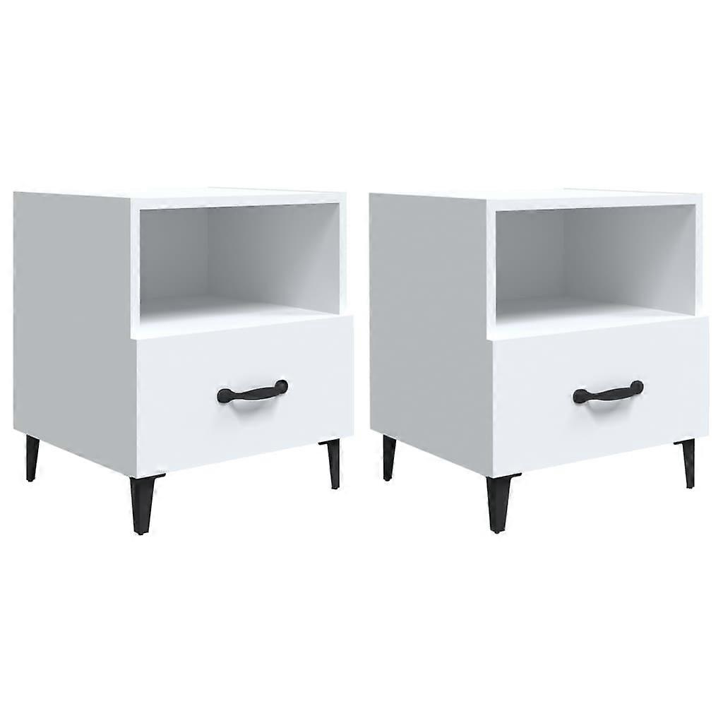 Bedside Cabinets 2 Pcs White Engineered Wood Bedside Tables