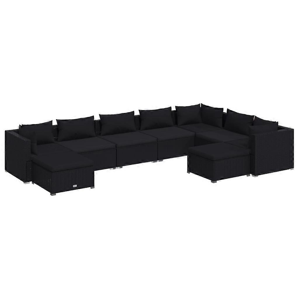 9 Piece Garden Lounge Set With Cushions Poly Rattan Black Patio Furniture Sets