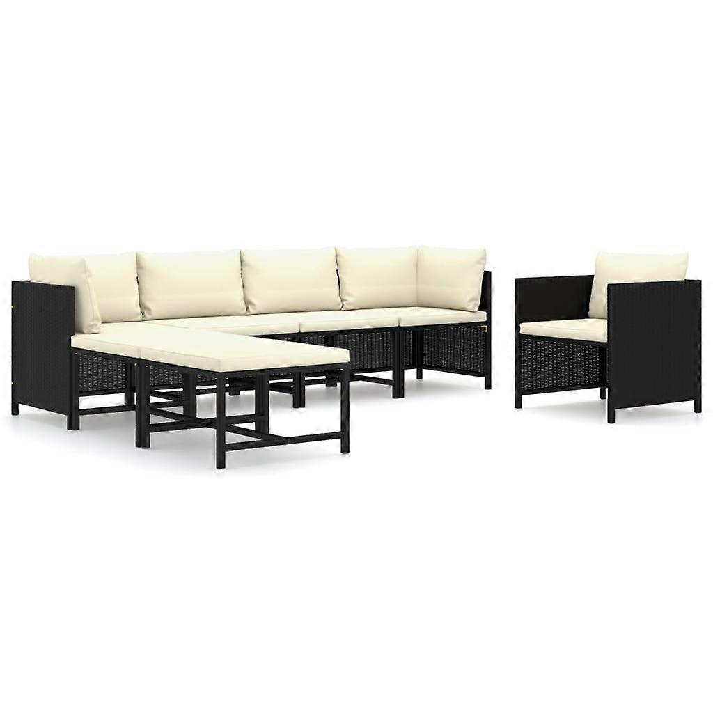 7 Piece Garden Lounge Set With Cushions Poly Rattan Black Patio Furniture Sets