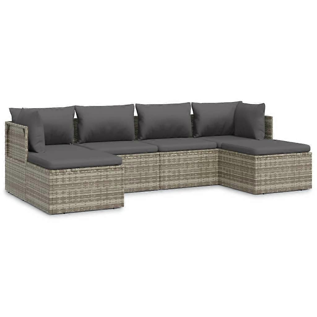 6 Piece Garden Lounge Set With Cushions Grey Poly Rattan Patio Furniture Sets