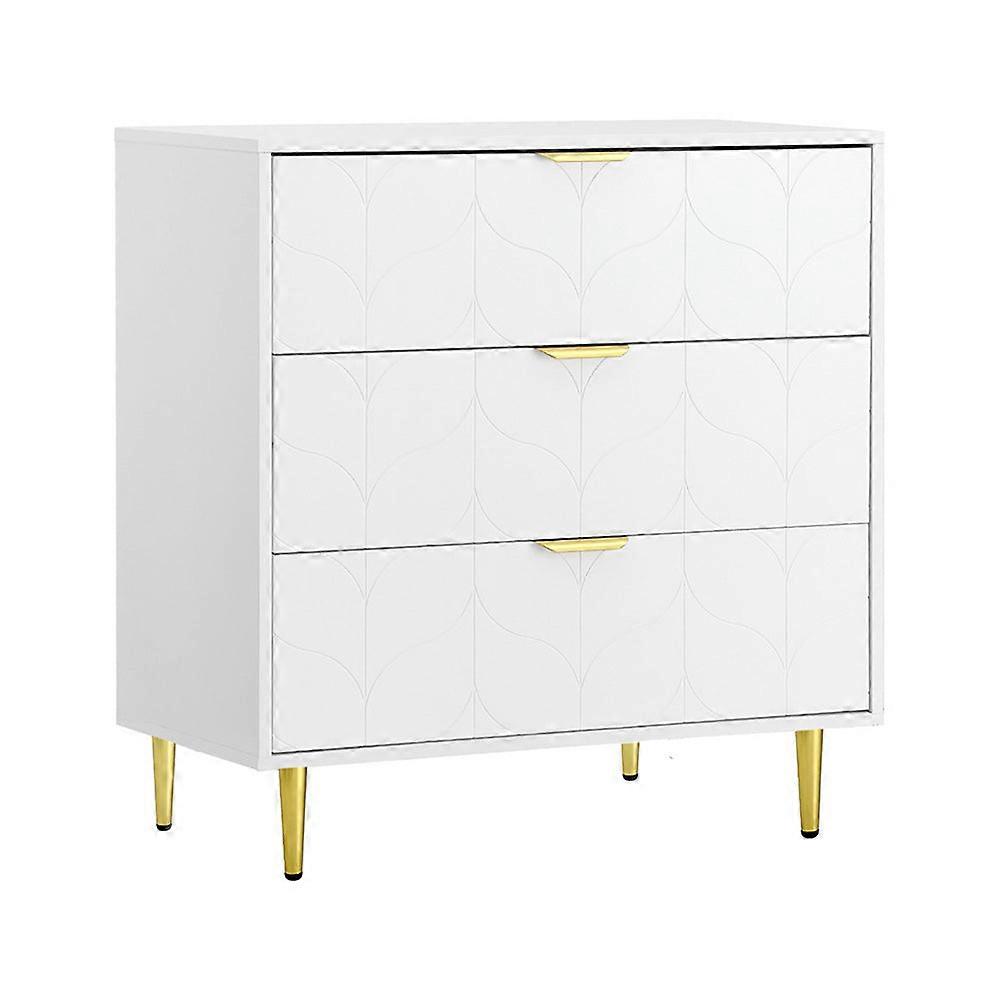 Stylish 3-Drawer Chest With A Unique Carved Pattern Design Rust-Proof Metal Handles And Feet For Long-Lasting Durability Spacious Drawers With Smooth Sliding Runners For Easy Access Wall Attachment Kit Included For Added Safety And Stability Each Drawer Supports Up To 10Kg For Reliable Everyday Storage Top Surface Holds Up To 40Kg — Perfect For Decor Or Essentials Easy-To-Clean Surfaces Ideal For Busy Households Compact Design Suits Bedrooms Hallways Or Small Apartments Quick And Simple Assembly With All Components Included Specifications
