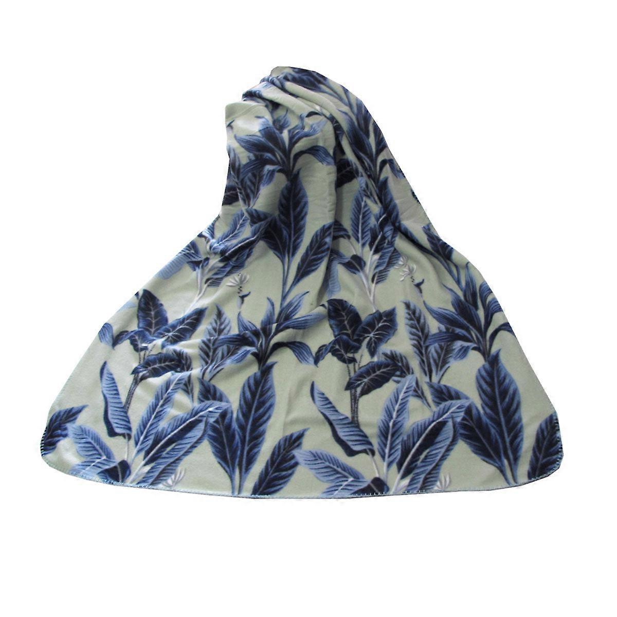 Banana Tree Leaves Printed Fleece Throw Rug 120 X 150Cm Sage Rugs