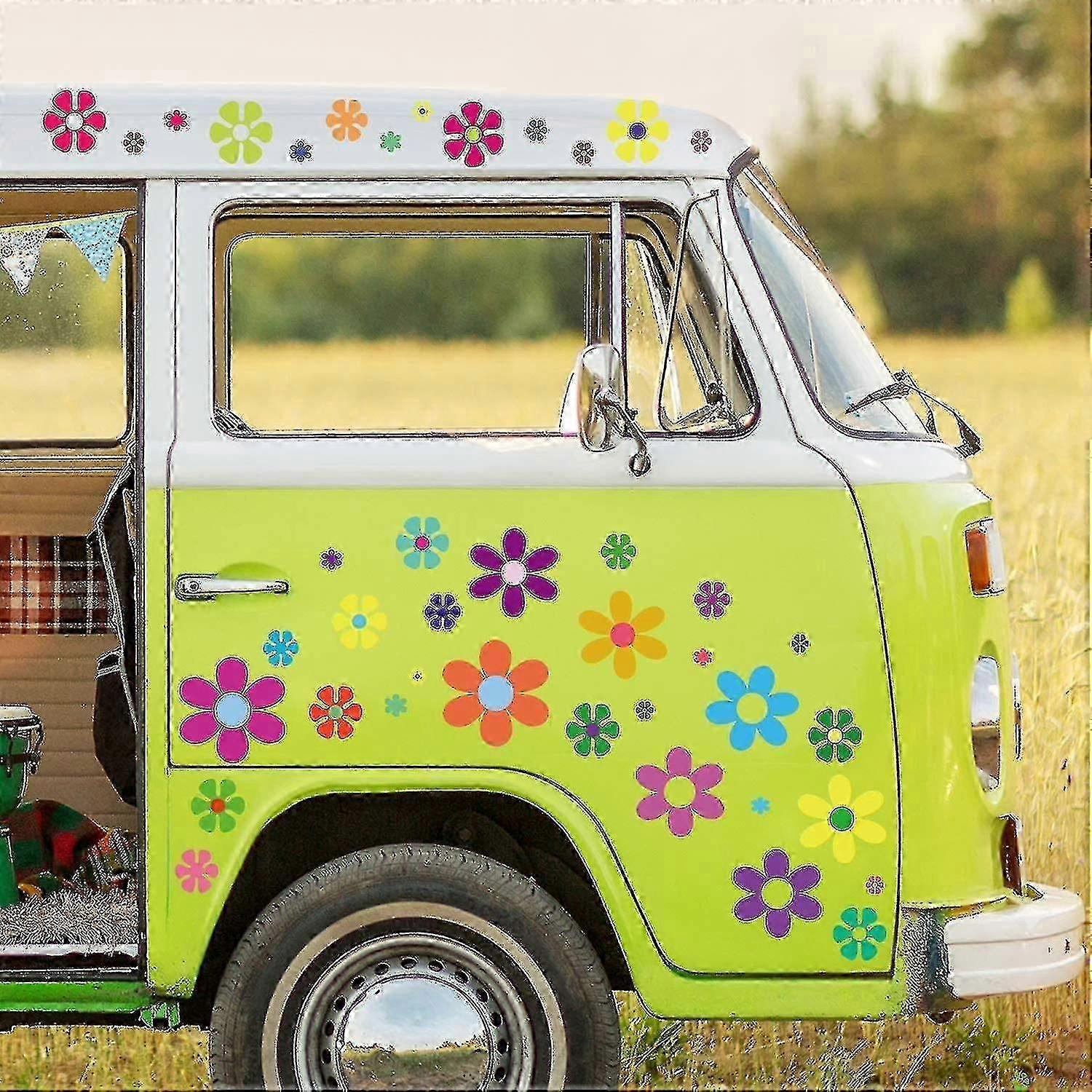 96 car flower Stickers 60s hippie theme party Stickers Multicolor daisy Stickers Vinyl retro flower Decals Colorful hippie decals flowers (96 flowers,