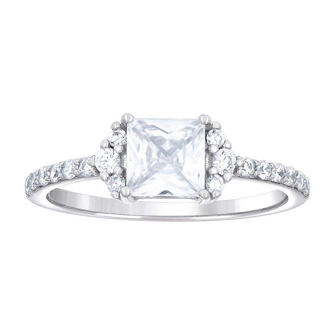 925 Sterling Silver Womens Princess-cut Round Cubic Zirconia Engagement Ring 6.7mm Wide Engagement Ring for Women - Ring