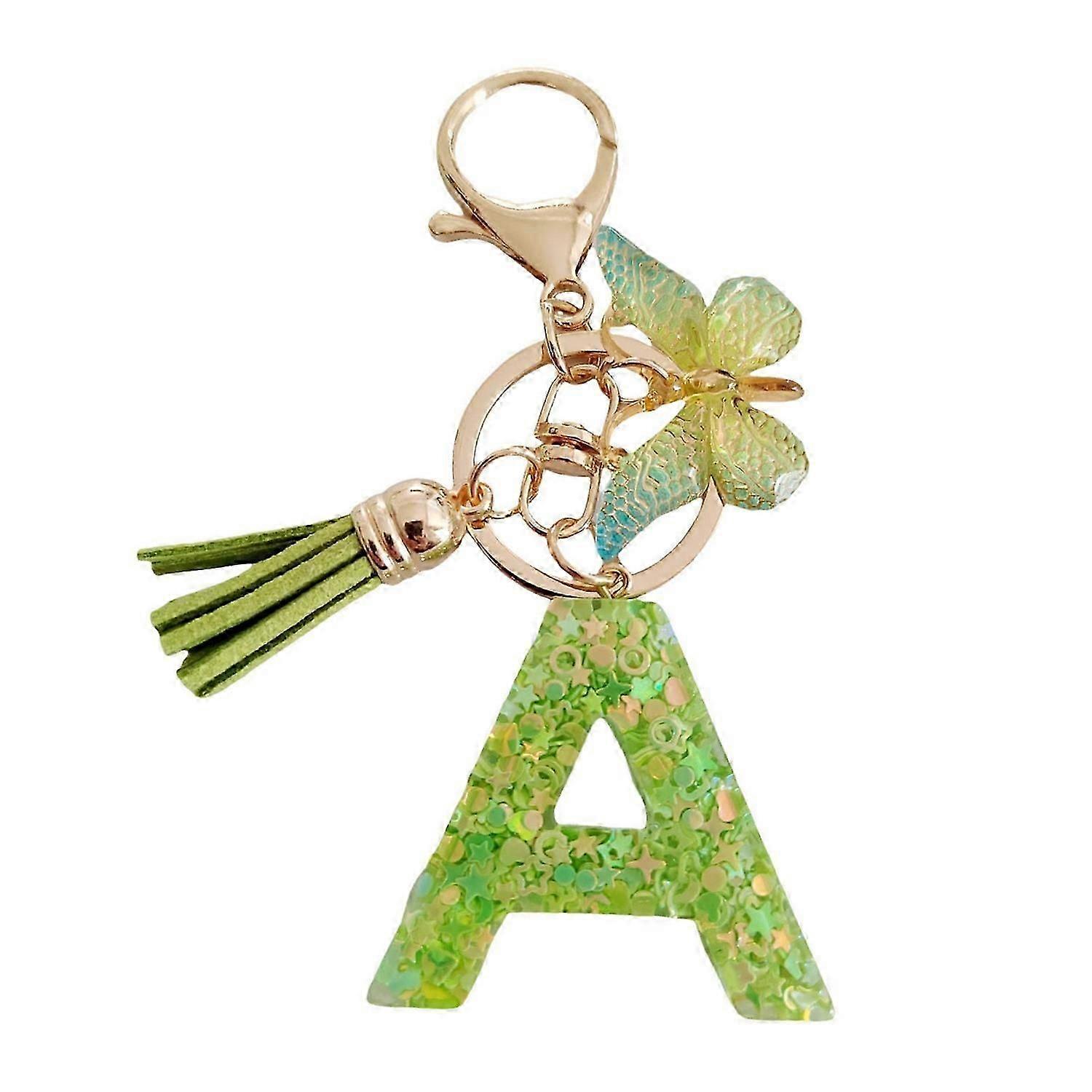 2Pcs Initial Letter Keychains Green Butterfly Pendant Keychain Set Exquisite Relief Alphabet