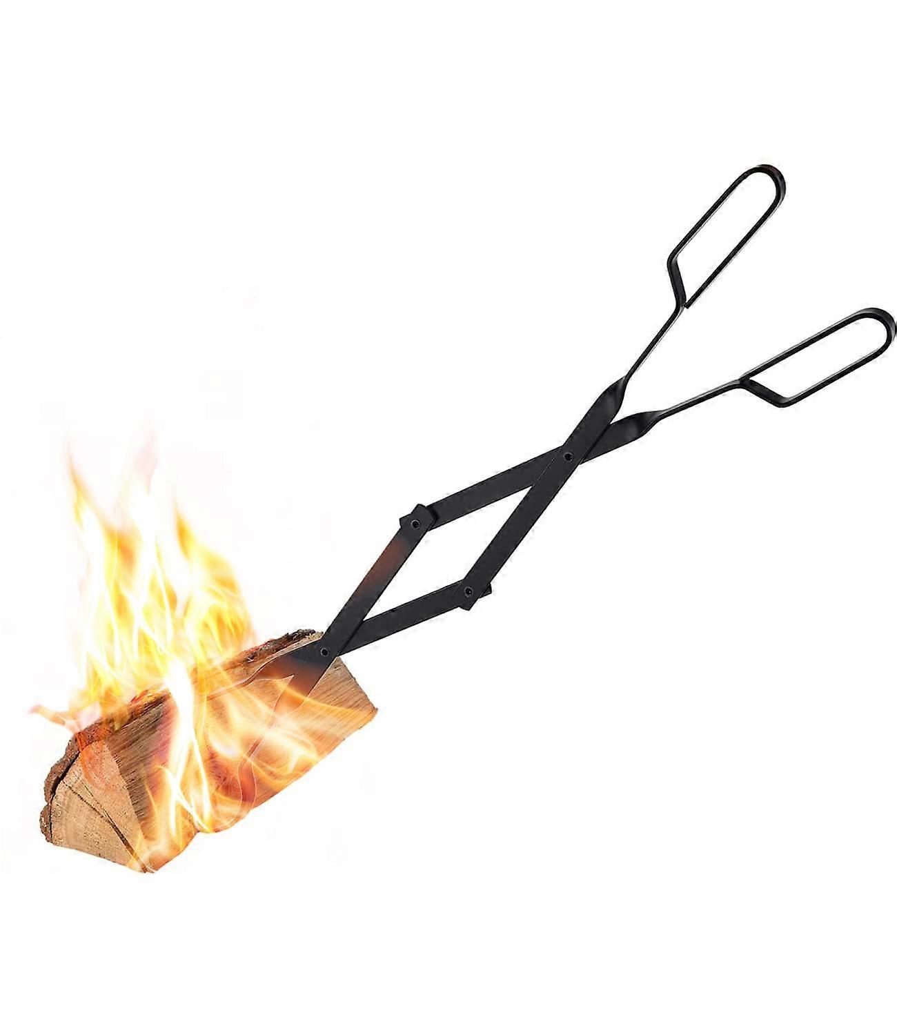 26" Heavy Duty Iron Fireplace Tongs, Firewood Grabber for Outdoor Indoor Fire Pit, Campfire Bonfire Tool Accessories