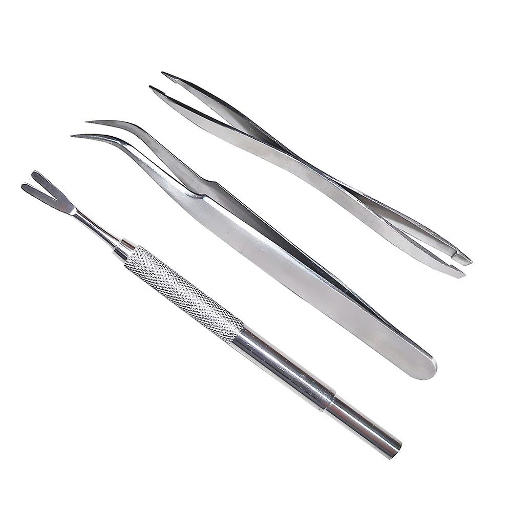 Stainless Steel Pet Tick and Flea Removal Tool Kit Three-Piece Set Durable Precise Tweezers Easy Animal Pest Control Lightweight Design for Pet
