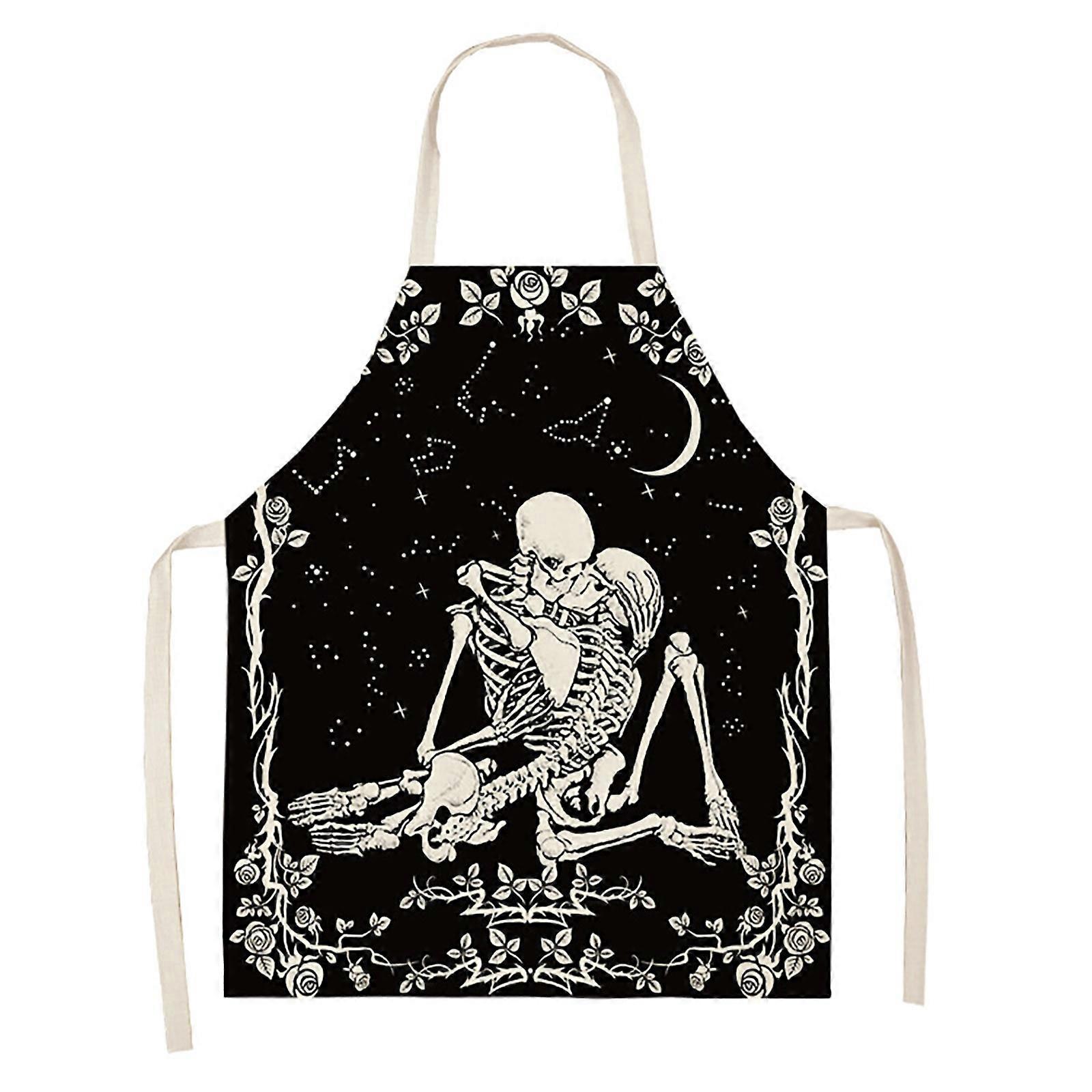 Apron Women Men Skeleton Bones For Halloween Funny Skeleton Designs Cosplay Halloween Apron Dress Black