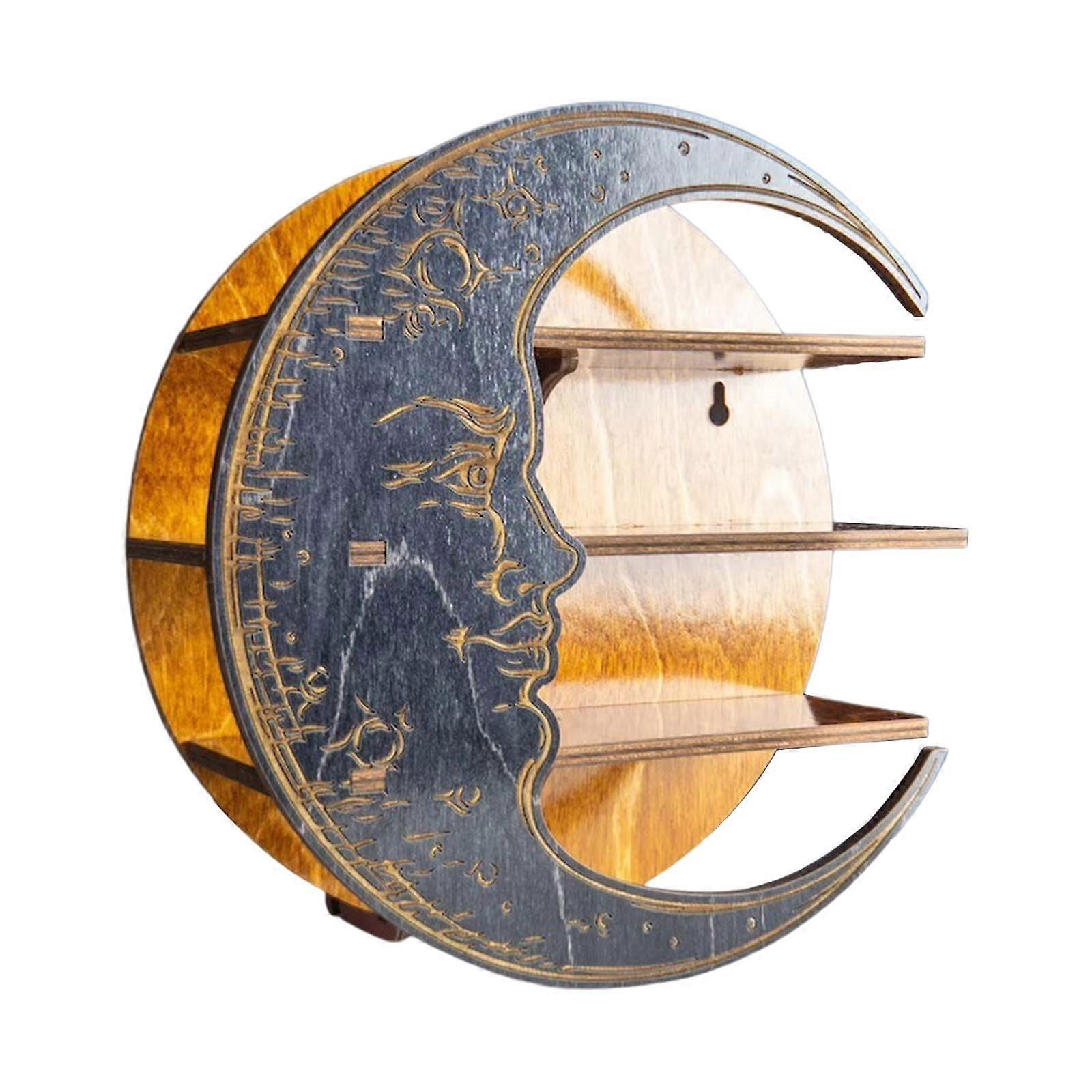 Wall Hanging Wooden Moon Storage Shelf Moon Design Wall Shelf Wooden Display Rack Sundries Organizer Yellow