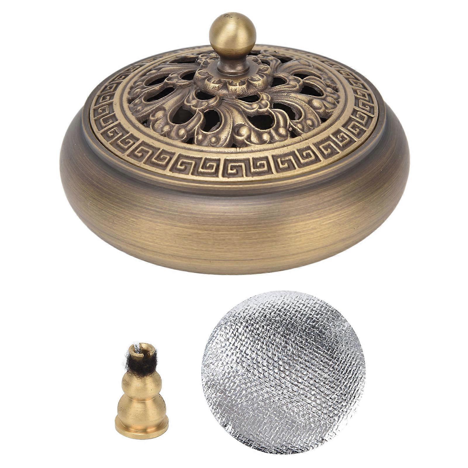 Antique Brass Incense Burner Holder with Lid and Fireproof Cotton Interior for Home Decor and Gifts