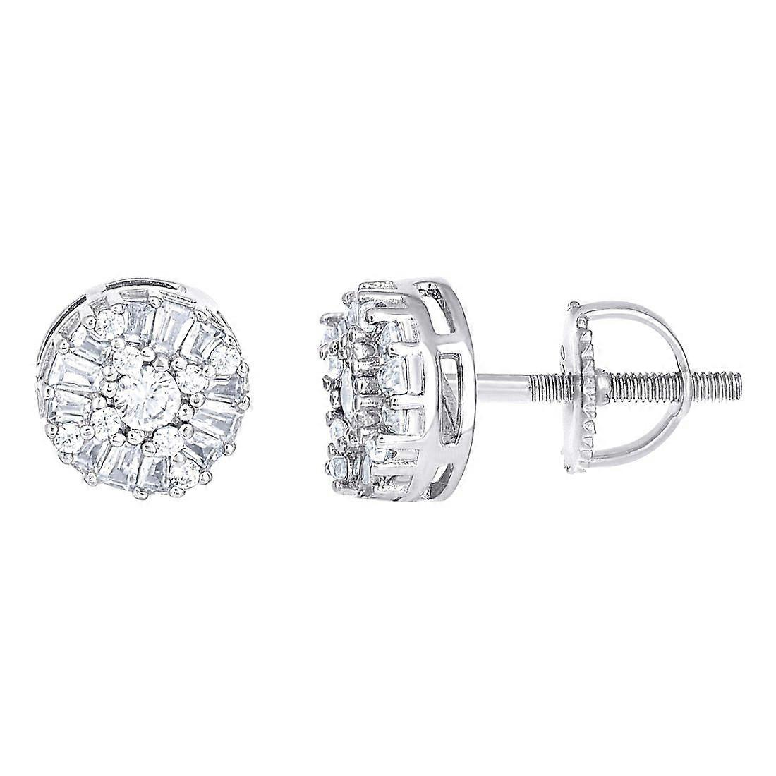 925 Sterling Silver Womens Round Baguette Moissanite Round Fashion Stud Earrings 7.8x7.8mm Wide Stud Earring for Women