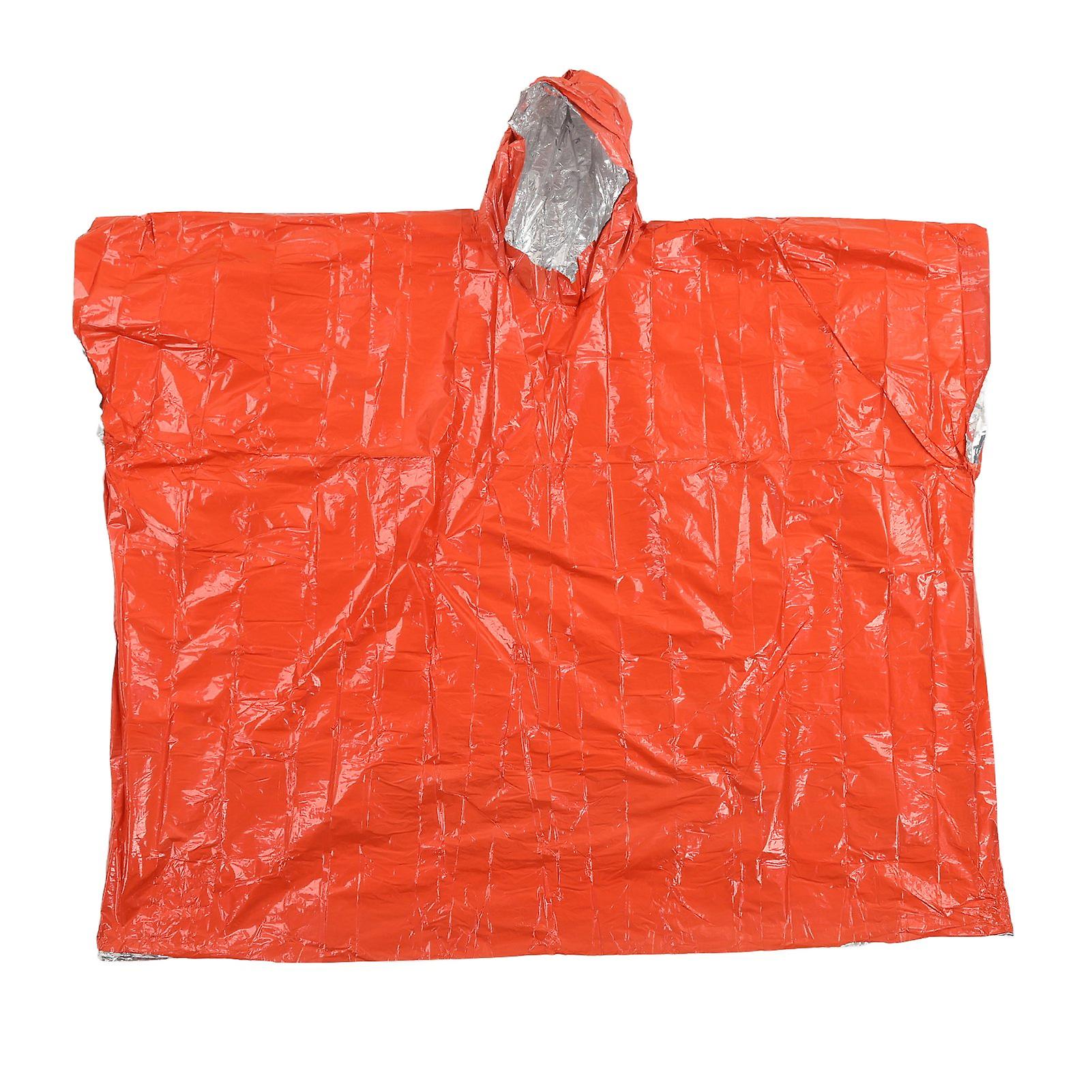 Emergency Waterproof Aluminium Foil Rain Poncho with Hood Lightweight Compact Survival Blanket for Outdoor Camping Gear Emergency Kit Accessorie