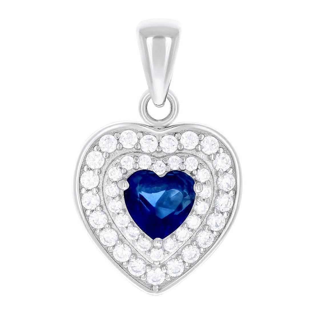 925 Sterling Silver Womens Blue White Love Heart Round Cubic Zirconia Heart Charm Pendant Necklace 19x11.9mm Wide Pendan