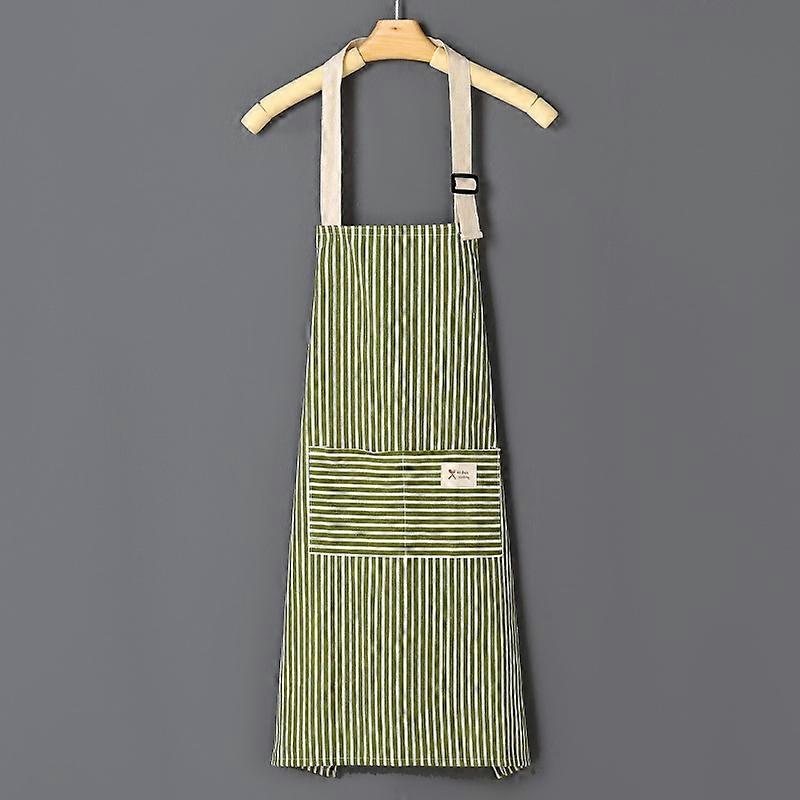 Cotton Linen Striped Apron Lightweight Kitchen Apron Oil Resistant Green Adjustable Strap Ideal for Cooking Durable Fabric With Pocke