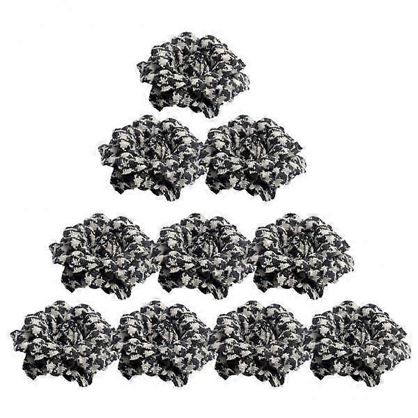 2X 10 Pieces Houndstooth Camellia Flower Heads for DIY Crafts 6cm Black