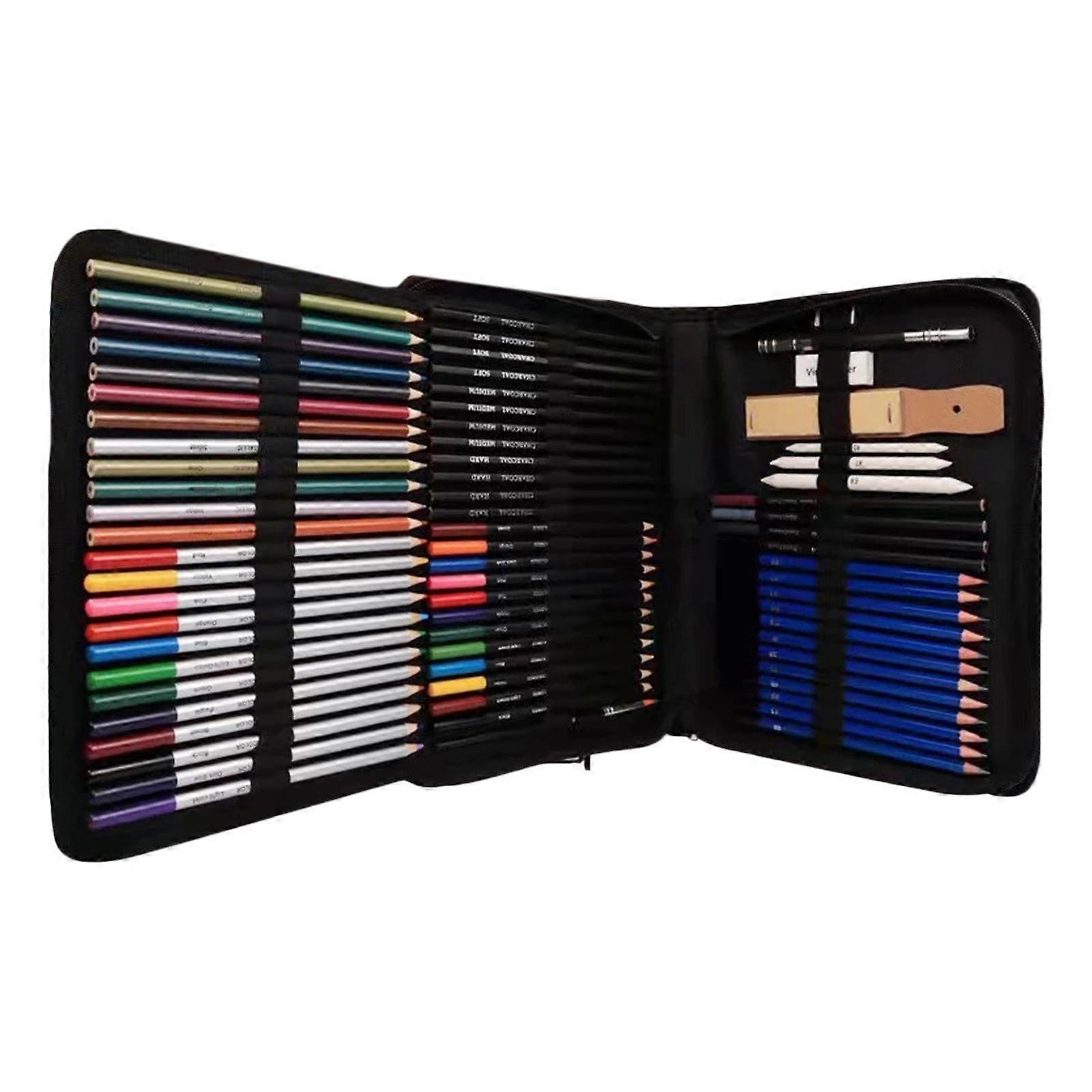 Description: Professional drawing kit - for sketching or drawing, realistic works. A Wide Variety of Pencils,Drawing pencils 2H 3H 4H 5H HB 2B 3B 4B 5B 6B 8B, charcoal pencils & sticks and graphite sticks with different hardness: soft/ medium/ hard, grant you all ranges of shades and enhance your sketching technique. It is suitable for beginners and professional artists. Portable Zip Pocket allows you to easily store and save your drawing pencil combination without having to worry about lost thing and easily get sketches. The use of charcoal sketch pencil sets anytime and anywhere will be an excellent piece of art for drawing or painting Safe and Non-toxic,Pencils and tools are made of environmentally friendly materials. they are non-toxic. It is for craft or construction paper, students with detailed sketches and advanced art techniques, and even scrapbook lovers. Specification: Material: Wood Size Chart: Size: 29.5x21.5x4cm/11.61x8.46x1.57inch Package Includes: 12 Pieces Premium Drawing Pencils 12 Pieces Charcoal Pencils 12 Pieces Metal Color Pencils 12 Pieces Colored Pencils 12 Pieces Water Based Colored Pencils 1 Piece Dual Head Pencil Extender 3 Pieces Blending Paper Stumps 1 Piece Rubber Eraser 1 Piece Sandpaper Pencil Pointer 1 Piece Metal Single Hole Sharpener 4 Pieces Powder Pencils 1Piece Brush Note: 1. Please allow slightly error due to manual measurement. 2. Due to the difference between different monitors, the picture may not reflect the actual color of the item. 3. Wish you a wonderful on-line shopping!