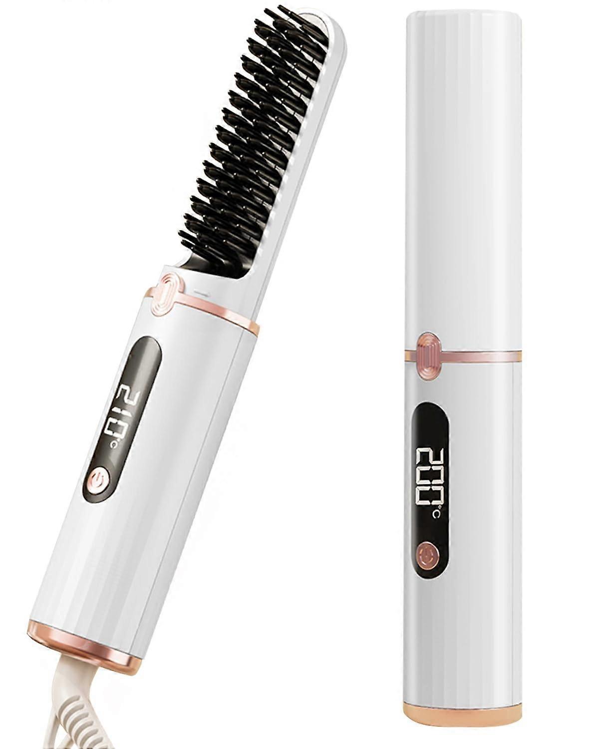 Hair Straightener Brush - Mini Hot Comb Straightener for Women, Portable Negative Ion Styling Comb in White for Travel and Home Use