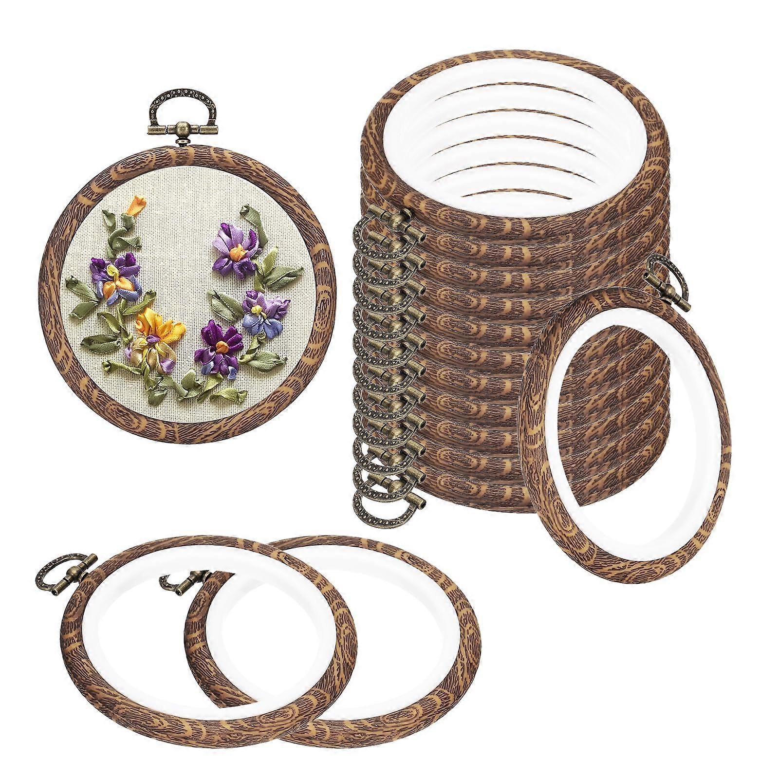 4 Inch Embroidery Hoops Set of 15, Imitated Wood Circle Frames for Cross Stitch, Sewing Crafts, and Hanging Decorations