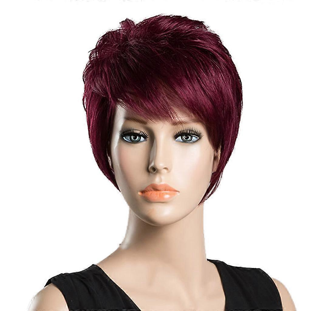 Women Short Straight Hair Wigs With Cap Clip Comb Copper Red