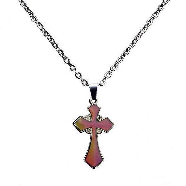 4-7pack Sensitive Crystal Thermo Mood Color Change Cross Pendant Necklace