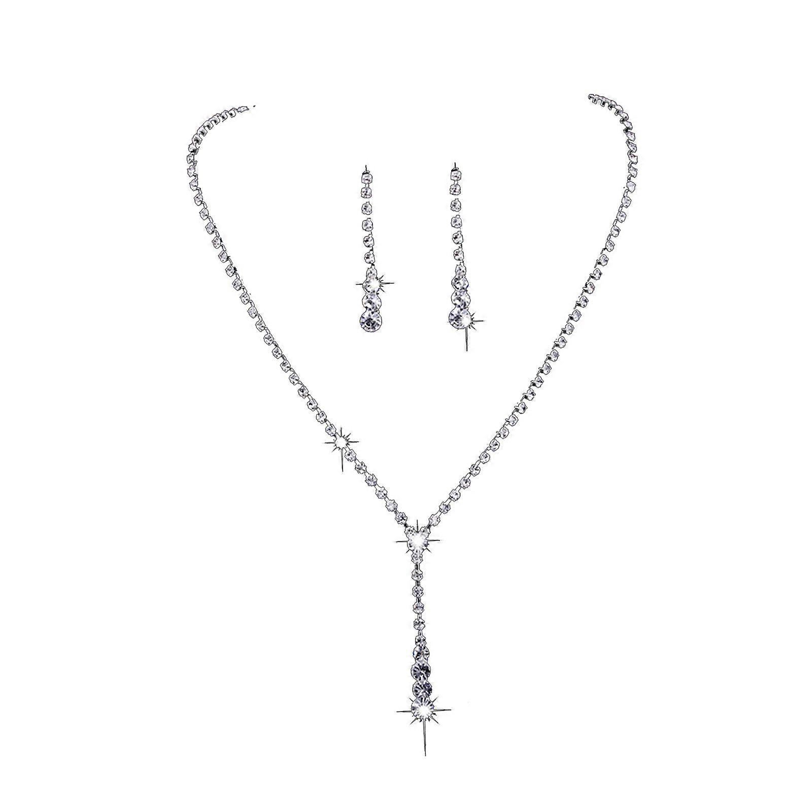 Wedding Bridal Jewelry Set ,White Jewelry Set Rhinestone Necklace Earrings Set
