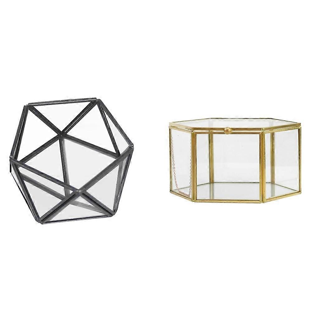 2Pcs Glass Geometric Terrarium Planter Flower Vase Container