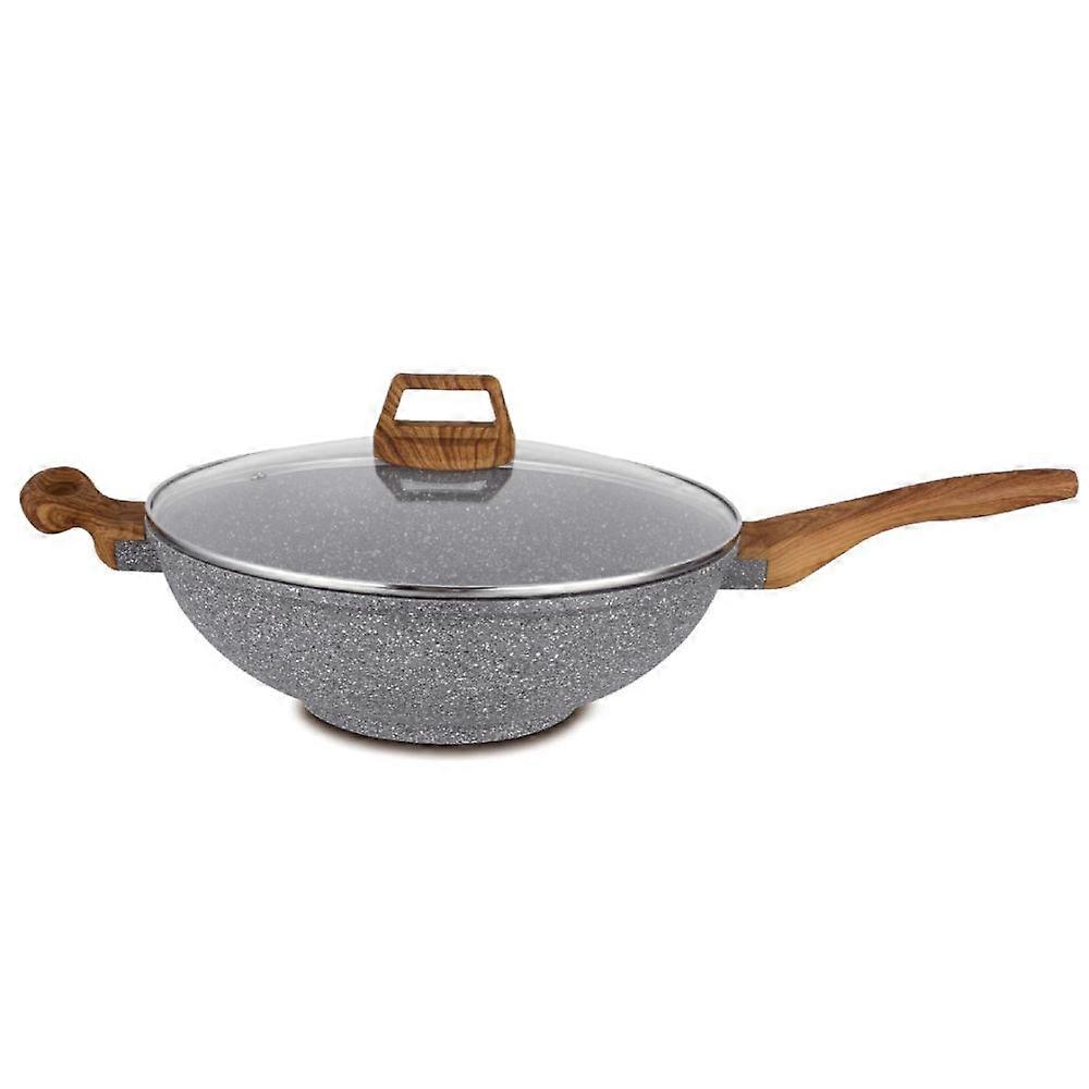 Hello Kitchen Wok Designed With Die-Casting Aluminium Tech And Heavy-Duty Construction To Even And Efficient Heating Utilizes Premium Non-Stick Marble Stone Coating With Effortless Food Release And Easy Clean Up Also 100% Ptfe And Pfoa Free Integrated With Ergonomic Soft Touch Handle Providing Relaxed And Comfortable Grip During Cooking Unique Clear Glass Cover Provides A Clear For Viewing Delicious And Healthy Food While Cooking Works On Versatile Cooktops: Gas Induction Halogen Ceramic And Electric Cookers. Cannot Work On Oven