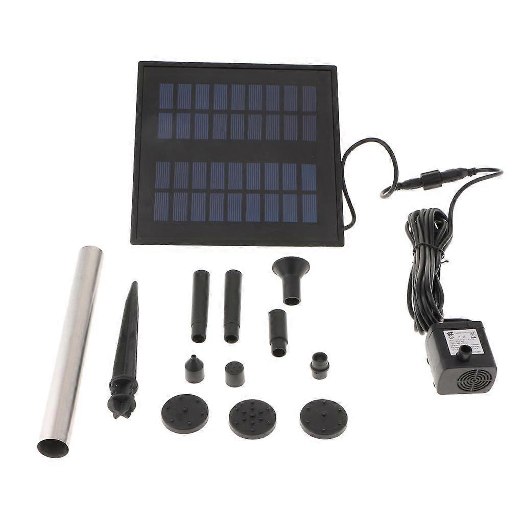 Description: This fountain is solar powered, it works automatically within 3s when the solar panel absorb enough sunlight. No extra power needed, charged by the sun, energy-saving and environmentally friendly. Built-in brushless motor which provides a longer service life and has lower energy consumption. Comes with 5 types spray nozzles for replacement, you can combinate them as you like to achieve different effects. Perfect for bird bath, tank, small pond, garden decoration and water circulation for oxygen. Specification: Material: Monocrystal Silicon+Plastic Size: 15x15cm/5.91x5.91inch Power: 4.5V-12V; 0.5W-5W Max Flow Quantity :100-350L/h Max water Height : 40-220cm Package Includes: 1 Piece Solar Panel 1 Set Sprayers and Accesories 1 Piece English Manual Note: Since the size above is measured by hand, the size of the actual item could be slightly different from the size above. Due to the lighting effects, monitor settings, etc. There could be some slight difference in the color of the pictures and the actual item.