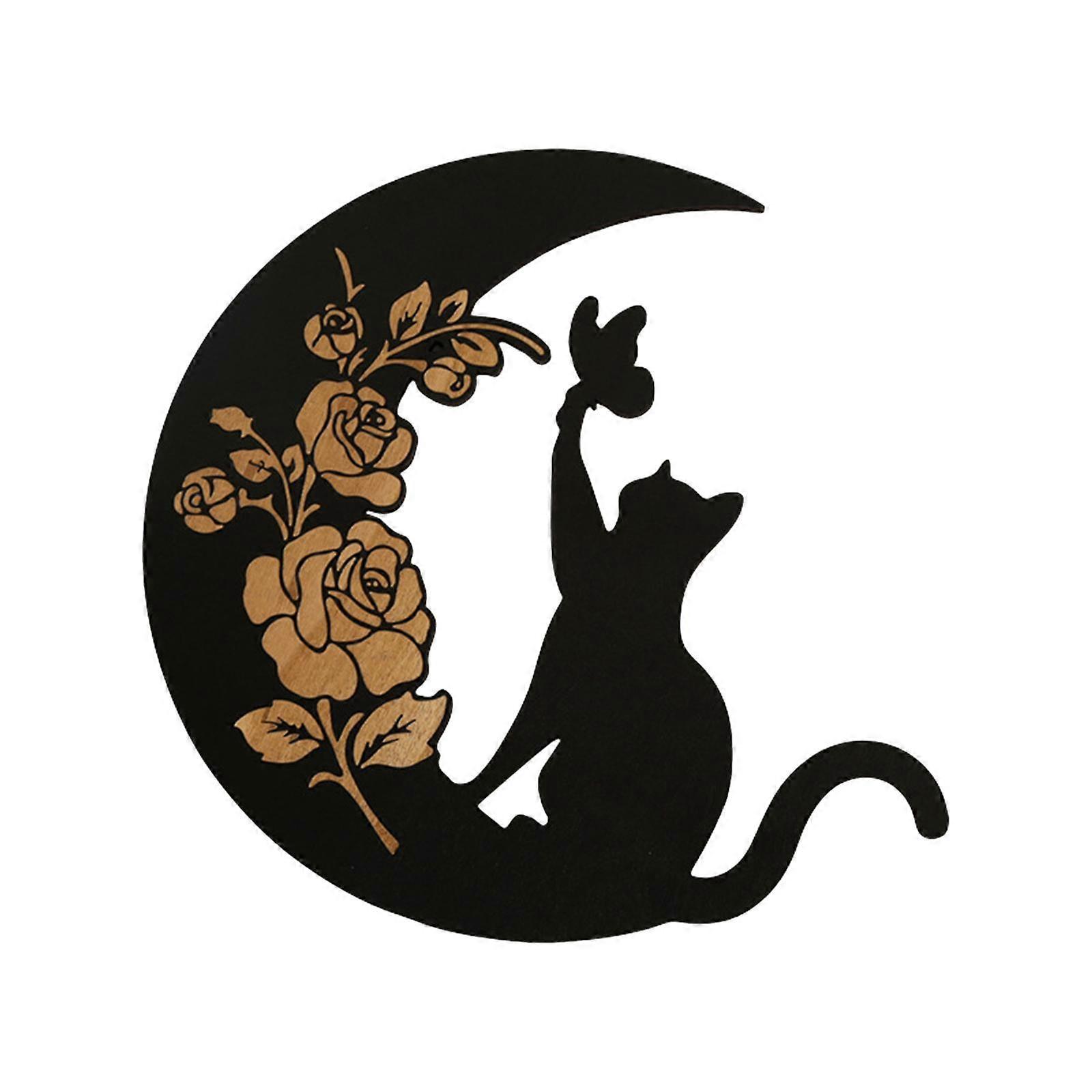 Wooden Moon Cat Wall Decor Wall Art Silhouette Decorative Stylish Cat Wall