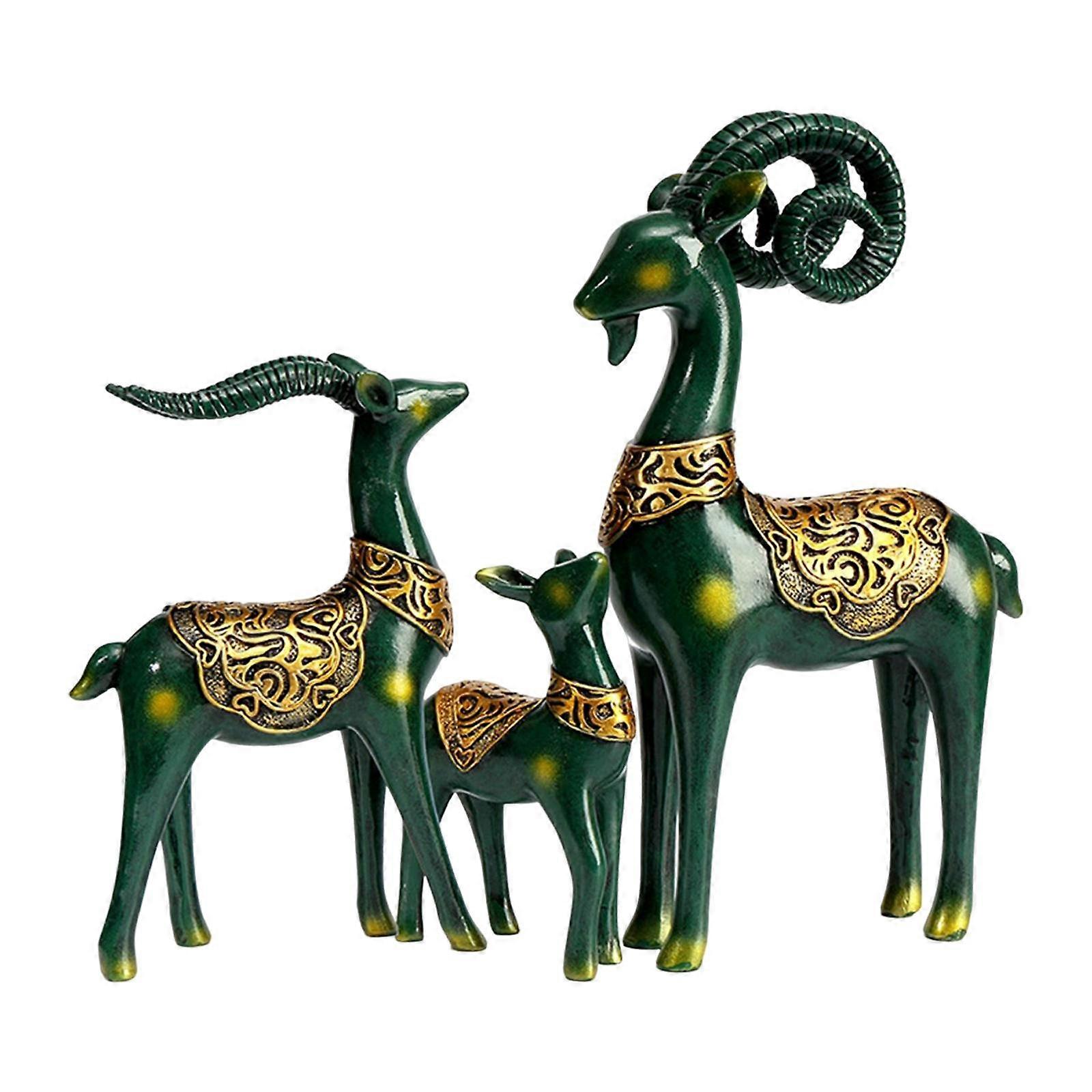 3Pcs Antelope Sculptures Standing Statue Animal Desktop Ornament Elegant for