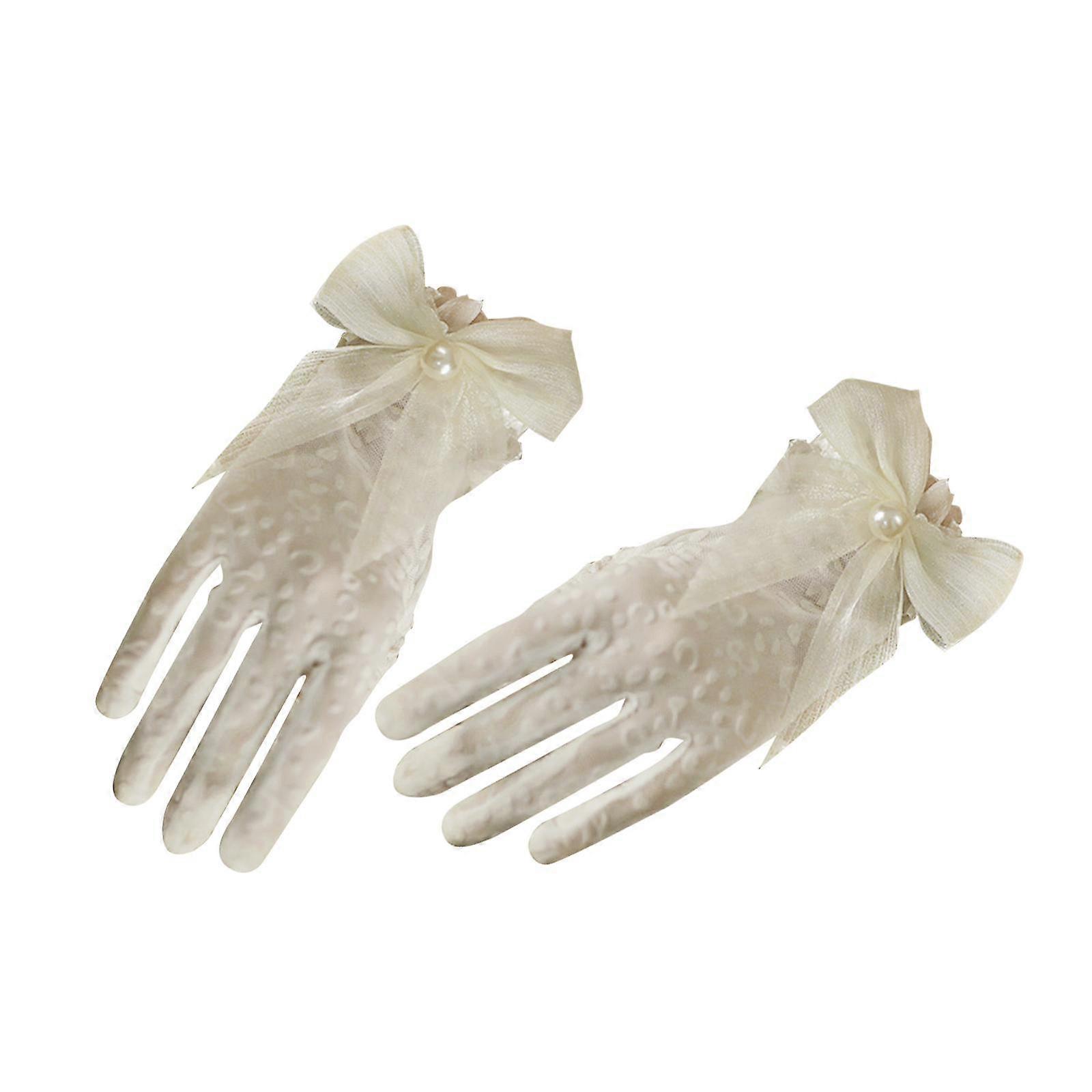 Ladies Lace Gloves Wrist Length Full Finger Gloves for Wedding Party Opera