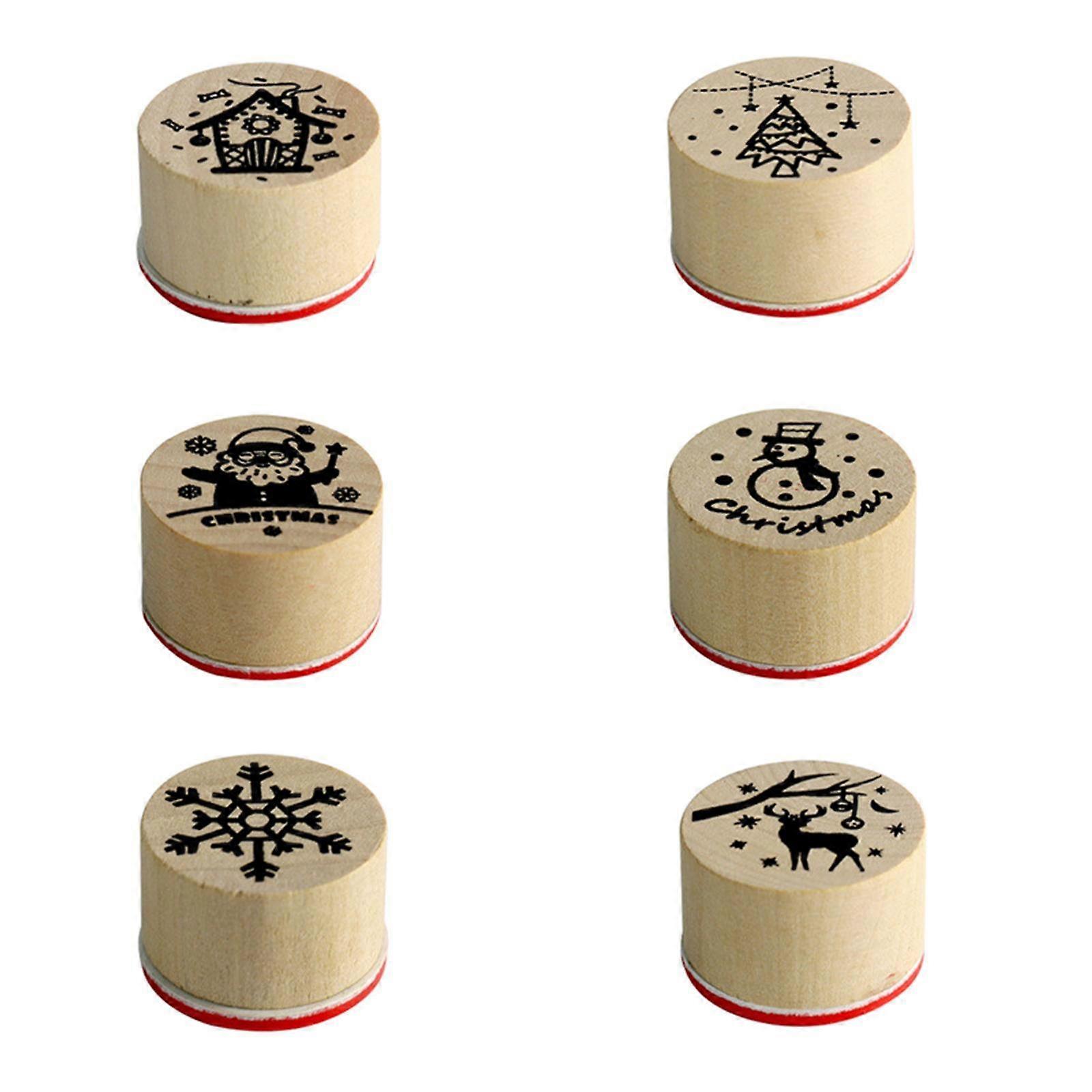 6x Wooden Christma Stamps for Art Christmas Stamp Set for Christmas Decor