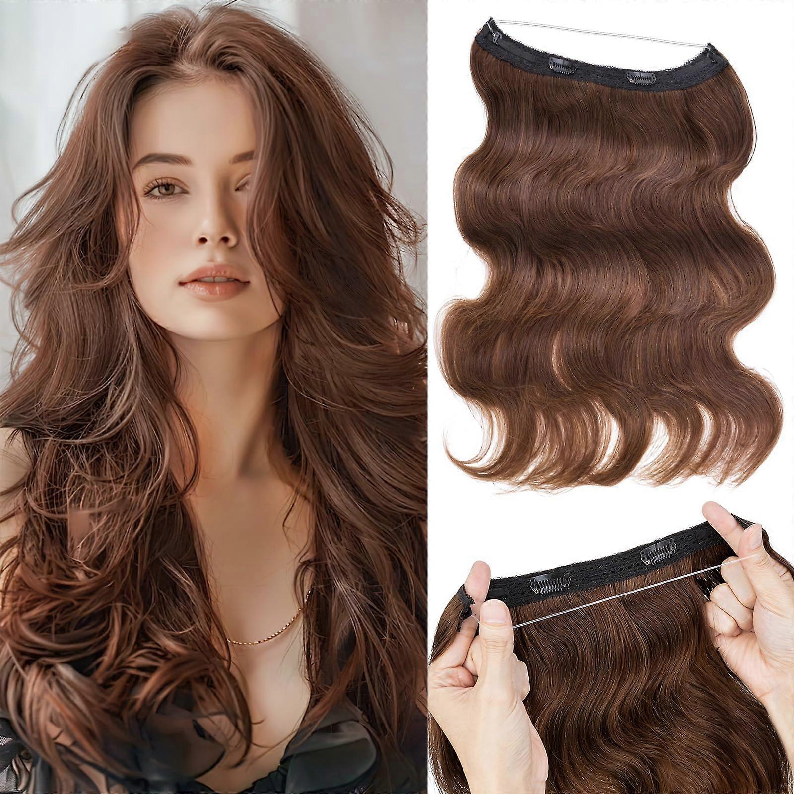 Halo Hair Extensions 100% Real Human Hair Wavy 20 Inch 70g Medium Brown Clip-In Extensions for Women
