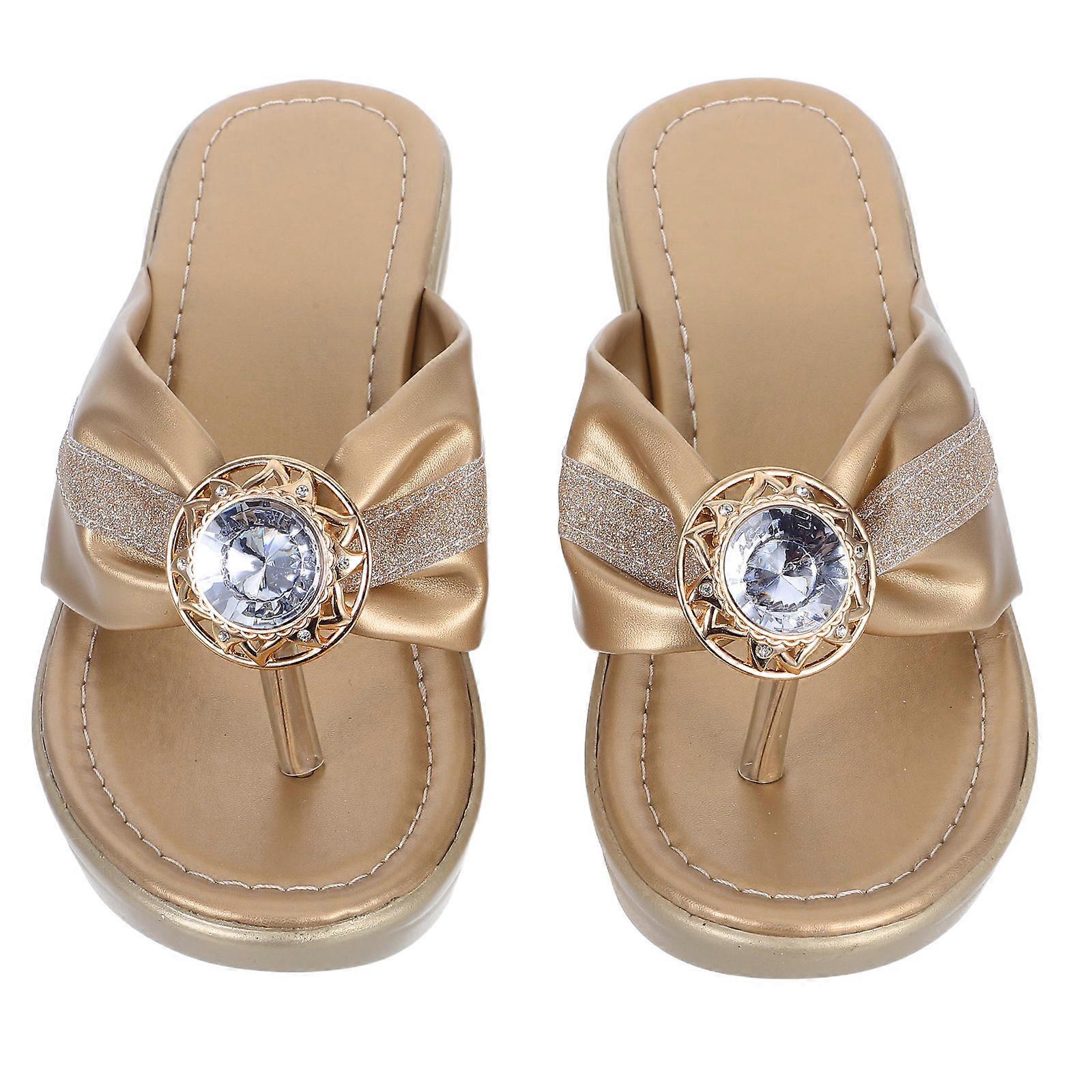 Beach Platform Sandals Woman Durable Flat Slippers With Golden Color 1Pair