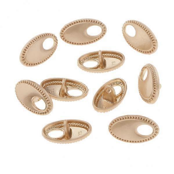 Description: 10 Pieces metal golden plating single buttons,carved with hole . Great accessory for sewing crafts ,suit for clothes ,coat ,jeans ,bags ,hats ,suit ,shirt sew on embellishments ,or connectors . Also could be handcrafts ornaments,like toys eyes ,doll nose etc . Made of quality metal, not easy rust and sturdy The special hole design ,makes them attractive and unique ,you can even decorate the hole with other beads or cabochons Specification: Material: Alloy Size Approx 18x10x6mm/0.7x0.4x0.24inch Hole Size Approx 2mm Package Includes: 10 Pieces Buttons (6 Pack)