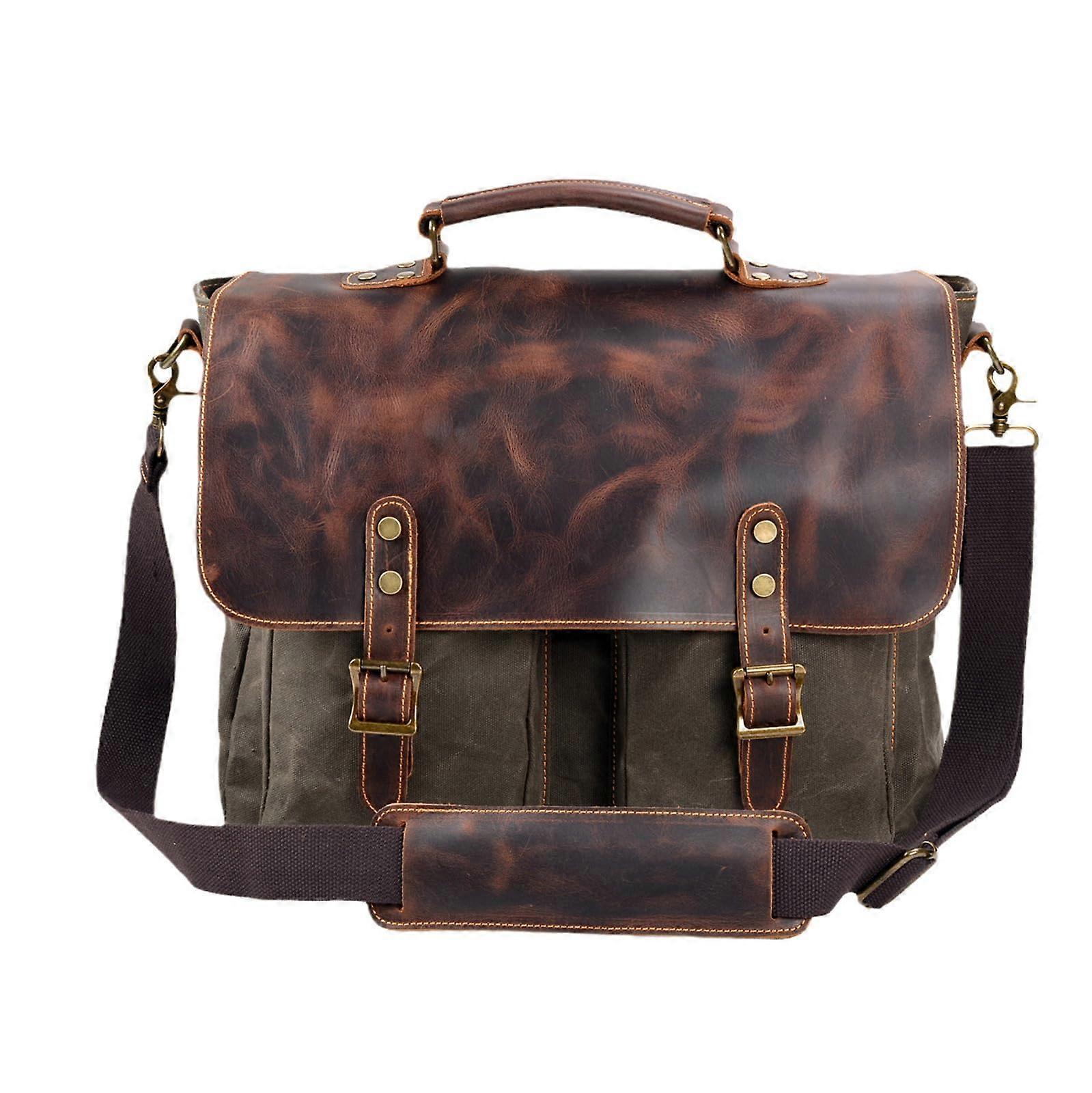 Vintage Canvas Messenger Bag with Crazy Horse Leather, Unisex Design, Adjustable Shoulder Strap, Large Capacity for Work and Travel