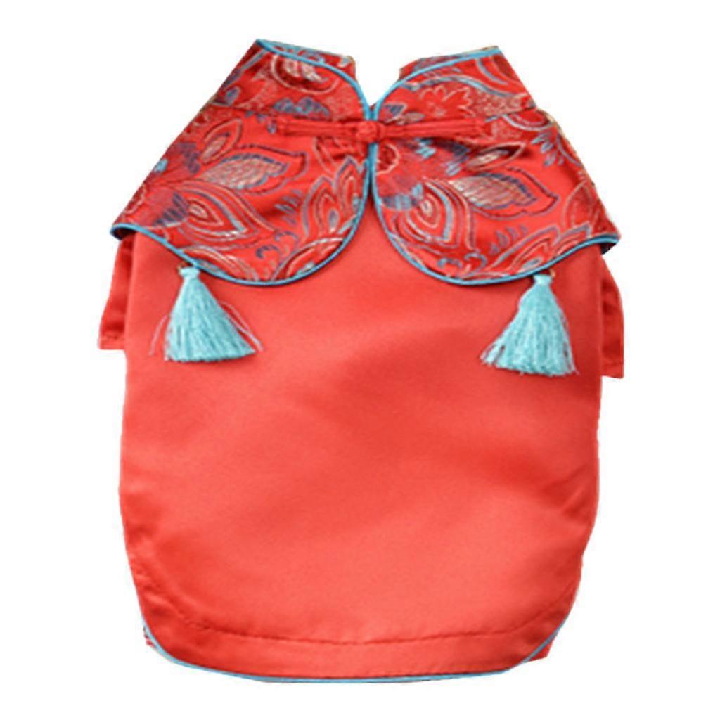 Description: Cute deisgn, traditional Qipao Style, makes your pet more elegent, charming. Creative, Pet Qipao Clothes, great decor clothes for pet. Comfortable,Soft, Fashionable,Washable, Breathable. Great gifts for your pet to wear at their costume ,birthday or wedding party. Easy and convenient to Wear and Clean. Specification: Materail: Cotton+ Polyester Size M: Chest Circumstance: Approx.40cm/15.75in , Back Length: Approx.30cm/11.81in, Neck Circumstance: Approx.26cm/10.24in Suitable for the pet weight about 3-4KG Size L :Chest Circumstance: Approx.45cm/17.72in , Back Length: Approx.35cm/13.78in, Neck Circumstance: Approx.30cm/11.81in Suitable for the pet weight about 4-6KG Package Includes: 1 Piece Pet Dress Note: Due to the light and screen setting difference, the item's color may be slightly different from the pictures. Please allow slight dimension difference due to different manual measurement.