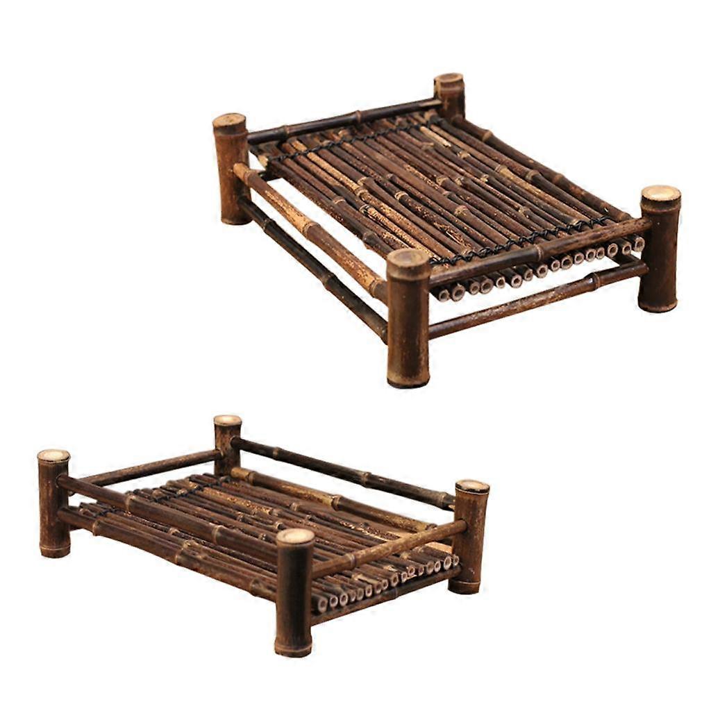 2x Chinese Bamboo Table Serving Tray Bamboo Tray for Tea Sets L + XL