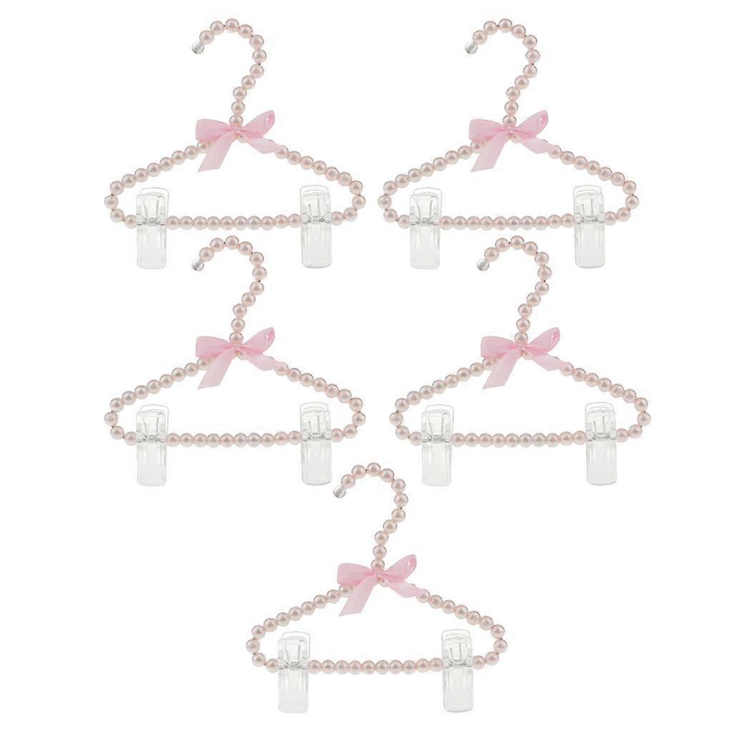 5Pcs Luxury Clip Hanger Hanging for Clothes Space Save Plastic Pearl Pink